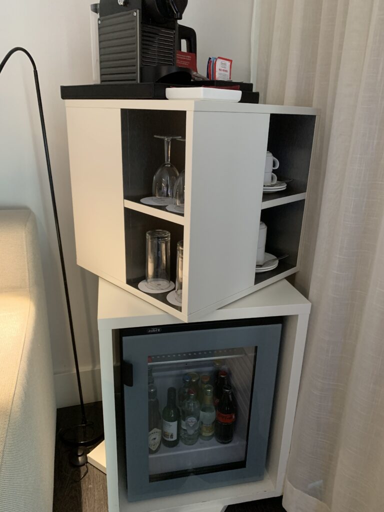 ミニバーも良い感じ。少しなら冷蔵品を買っても冷やしておけます。