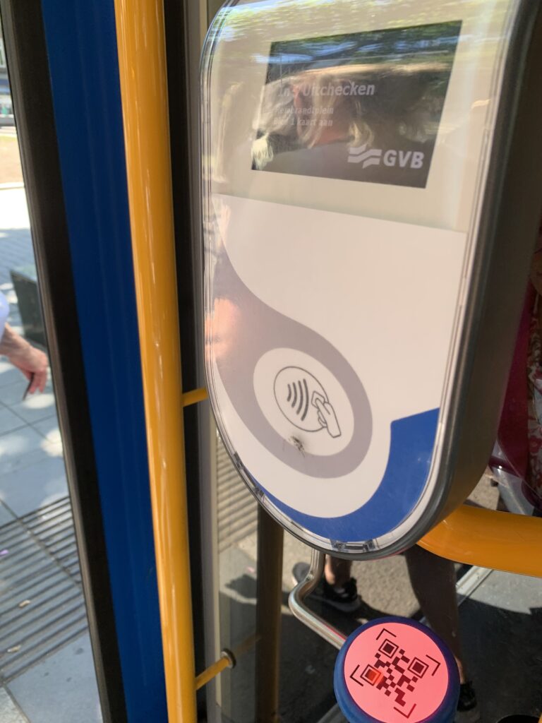 ユトレヒトからアムステルダムへの移動は特別なチケットは要りません。入退場時に、駅にある専用端末(下の写真)にクレジットカードをタッチすればOK!