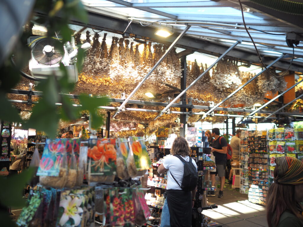 そこから少し歩くとシンゲルの花市場に到着!仮設テントのような売り場にギッシリと花や球根、花の種が売られています。