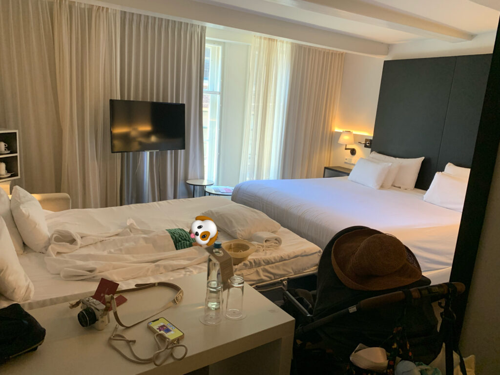 子供用にエクストラベッドも出してもらったので、部屋の中がほぼベッドに…笑