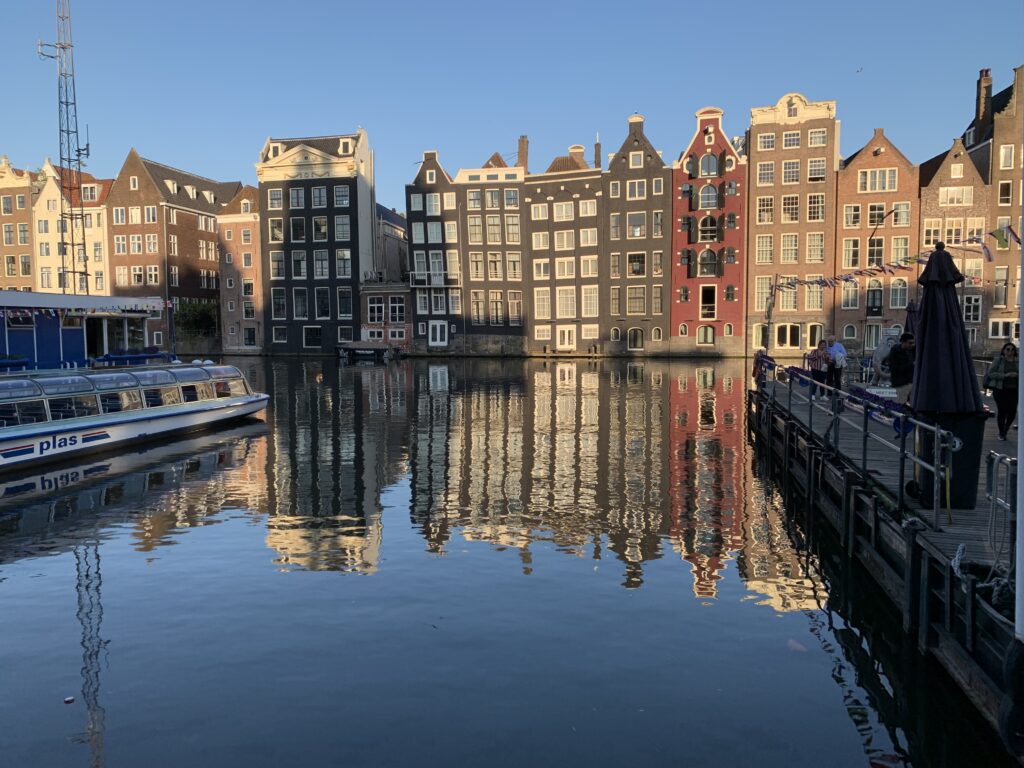 ダム広場からは歩いて帰りました。帰りには運河に建物が鏡のように反射している美しい光景も見ることができました。