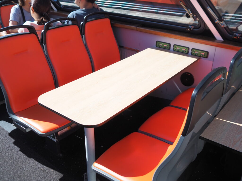 時間が来たらいよいよ乗船。座る場所は自由で、こんな感じのボックス席です。