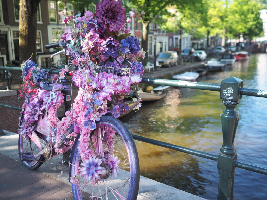 アムステルダムは自転車と運河の街。他人の自転車ですが、素敵な写真が撮れました…!