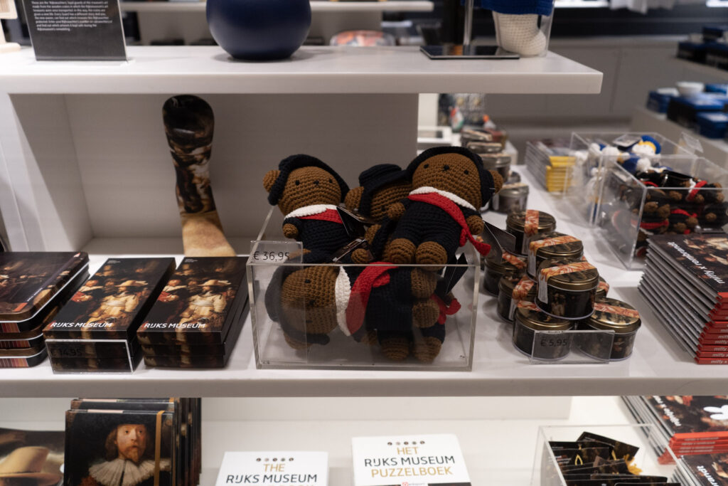 こちらはレンブラントの「夜警」をモチーフにしたミッフィ(に似たクマ?)のぬいぐるみ!