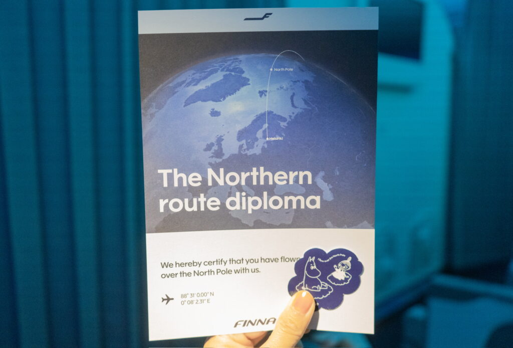 こちらの写真は北極圏を飛行したらもらえる記念カード。到着前に配られました。毎回もらえるわけじゃ無さそうかな?たぶん。