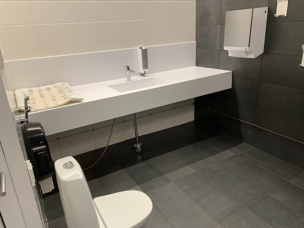 飛行機を降りてすぐの子連れ用トイレはこんな感じ↓で、結構きれいでした!