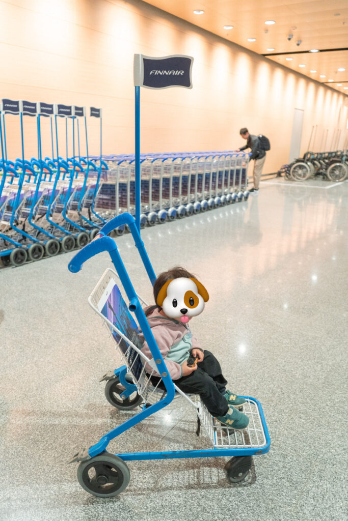 ちなみに、ヘルシンキ空港内では子供用のカートを使うことができます。入国審査に向かう通路に置いてあるので、子連れでも移動が楽チンです!